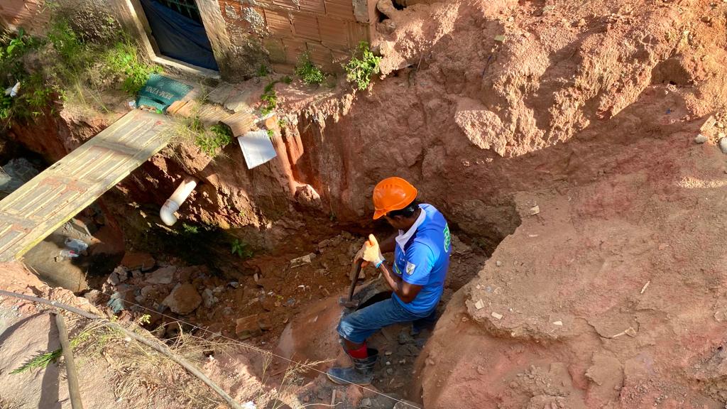 O serviço inclui a fixação de caixas de passagem e assentamento de manilhas para recuperação do sistema de drenagem, que tem como objetivo principal direcionar corretamente a água da chuva, sem que haja acúmulo na superfície, o que gerava inúmeros prejuízos para os moradores da localidade.