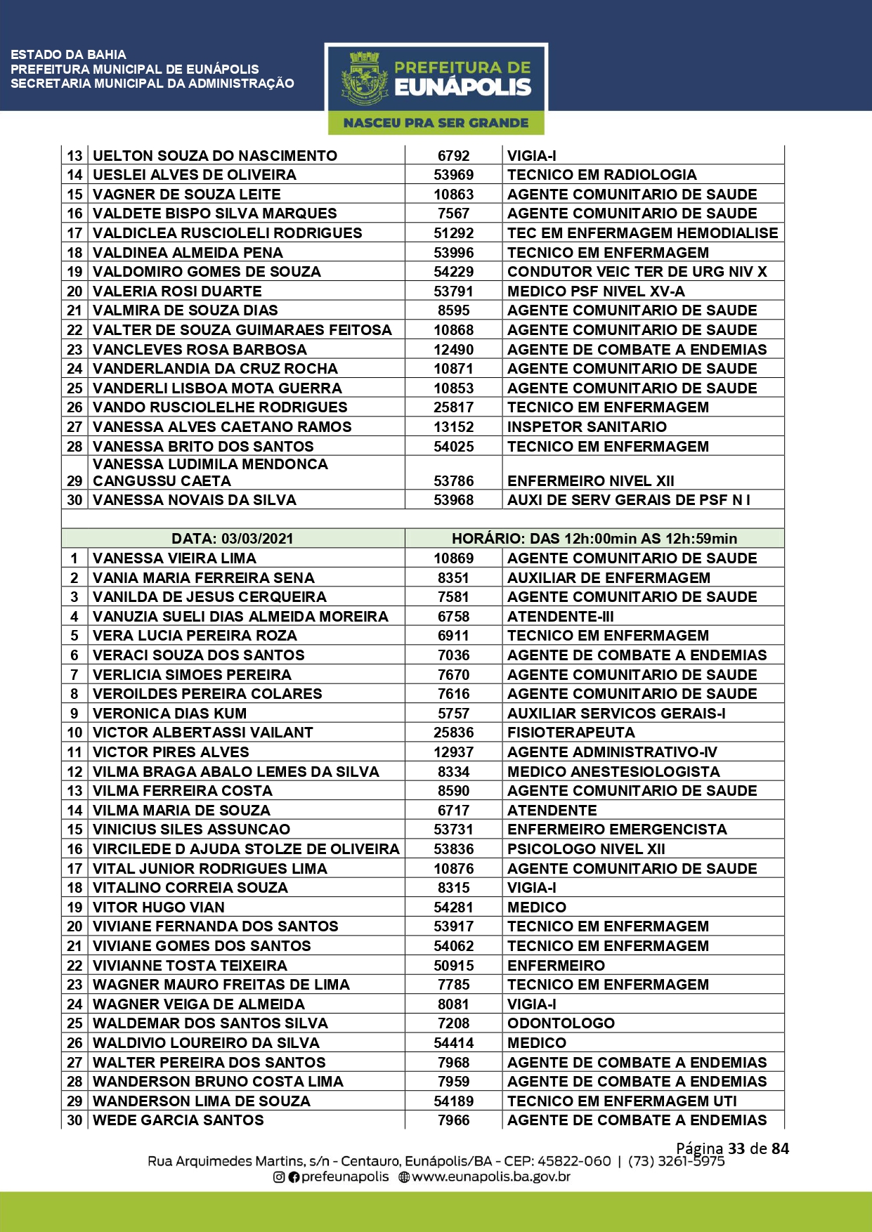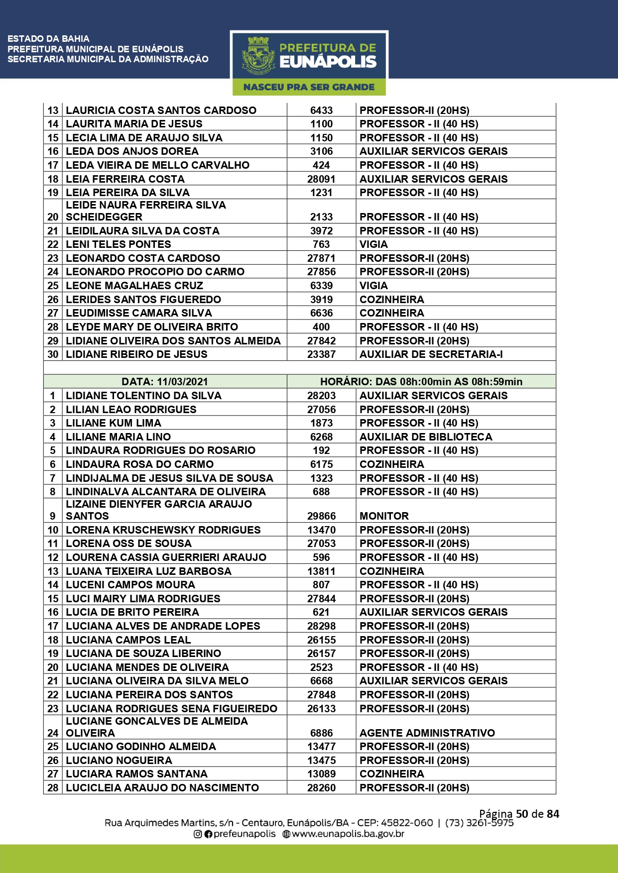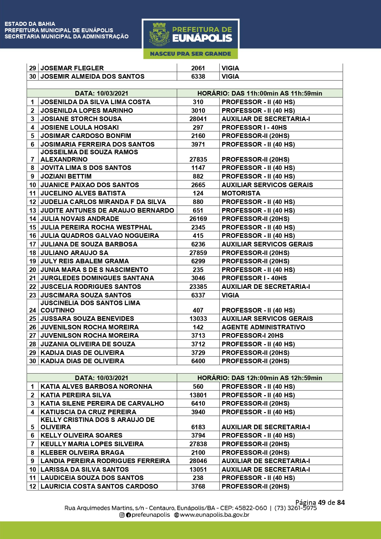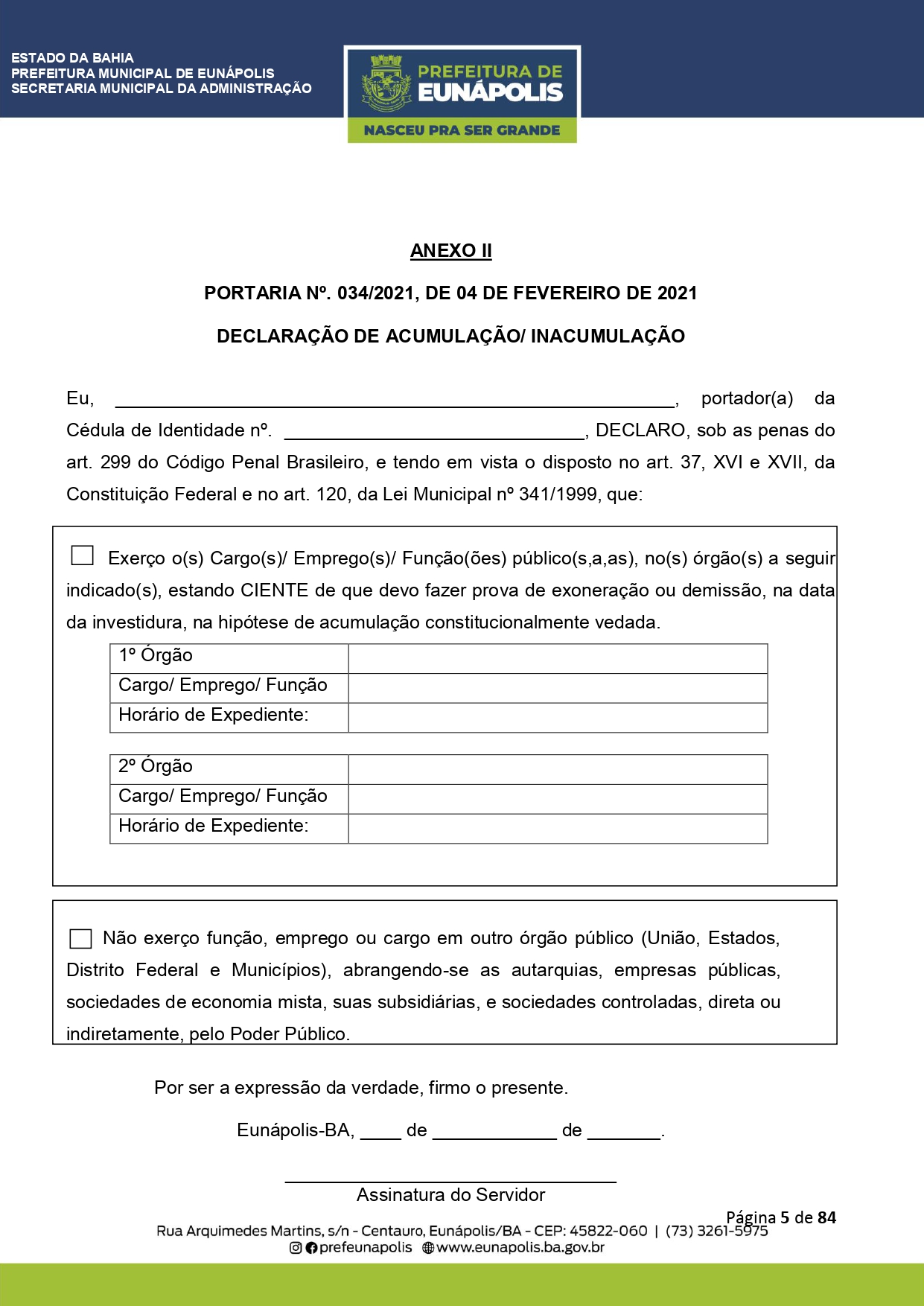 Documentação a ser levada e todos os demais detalhes que visam a atualização dos dados cadastrais dos servidores públicos municipais, você encontra acessando eunapolis.ba.gov.br/Site/ DiarioOficial.