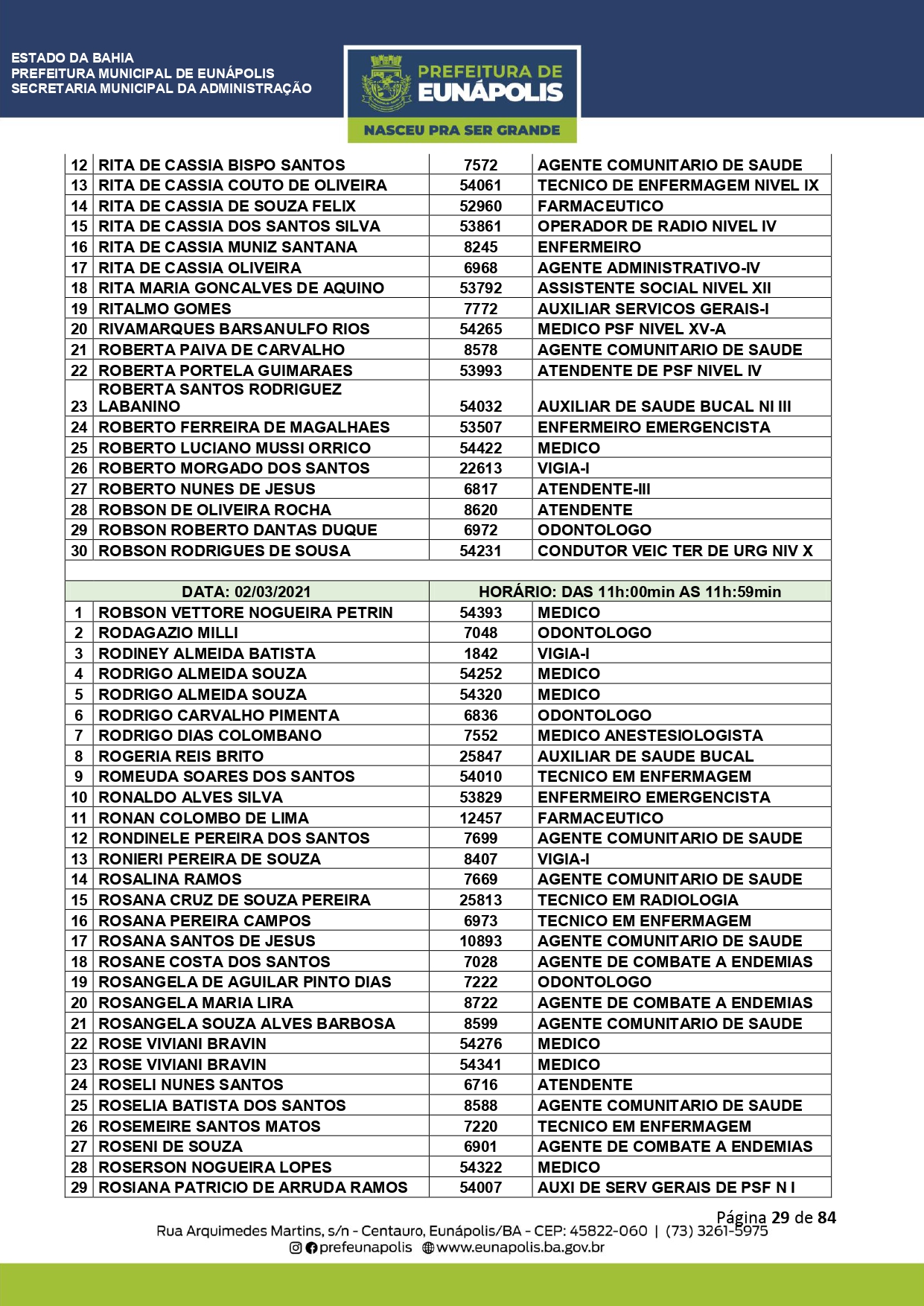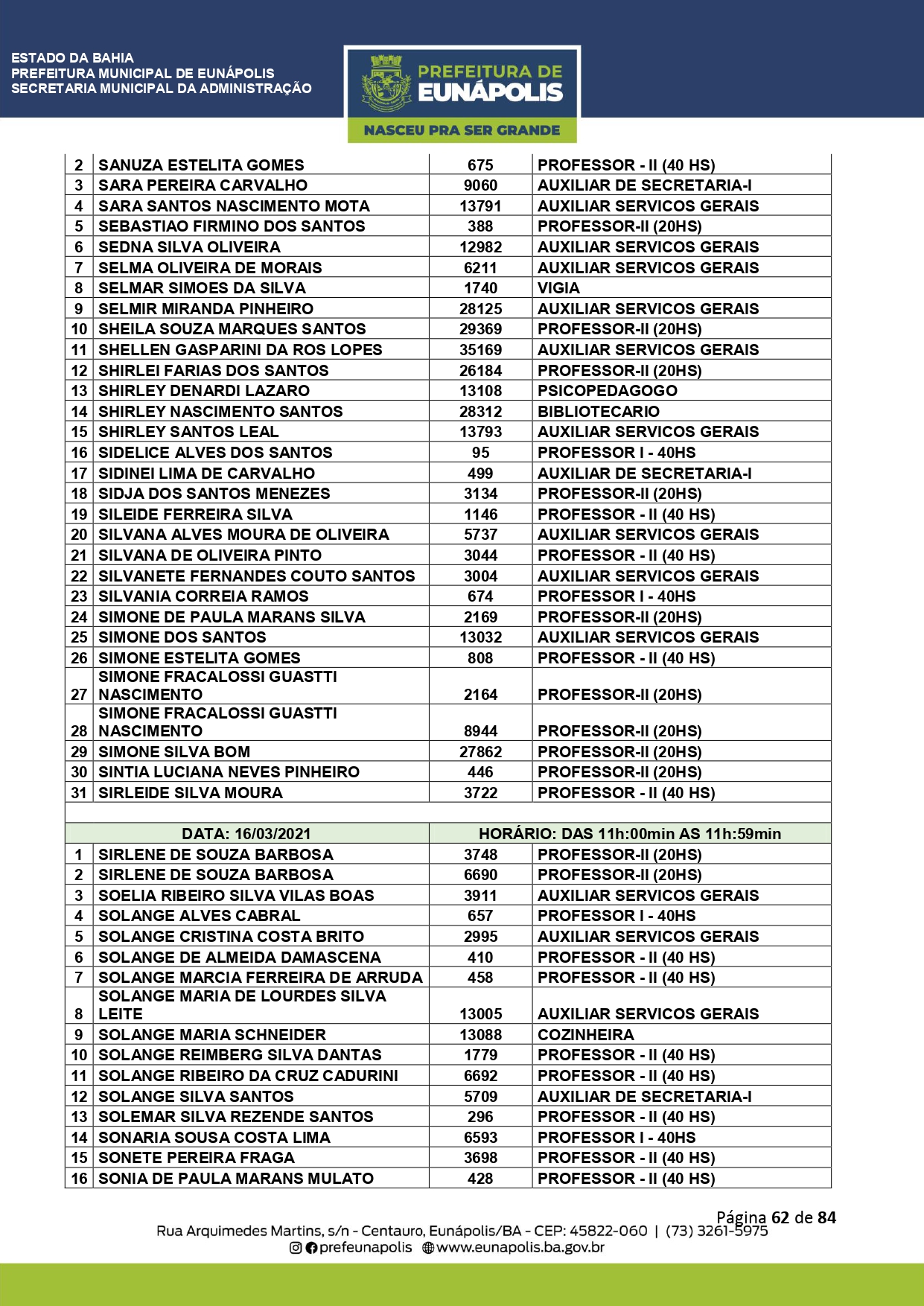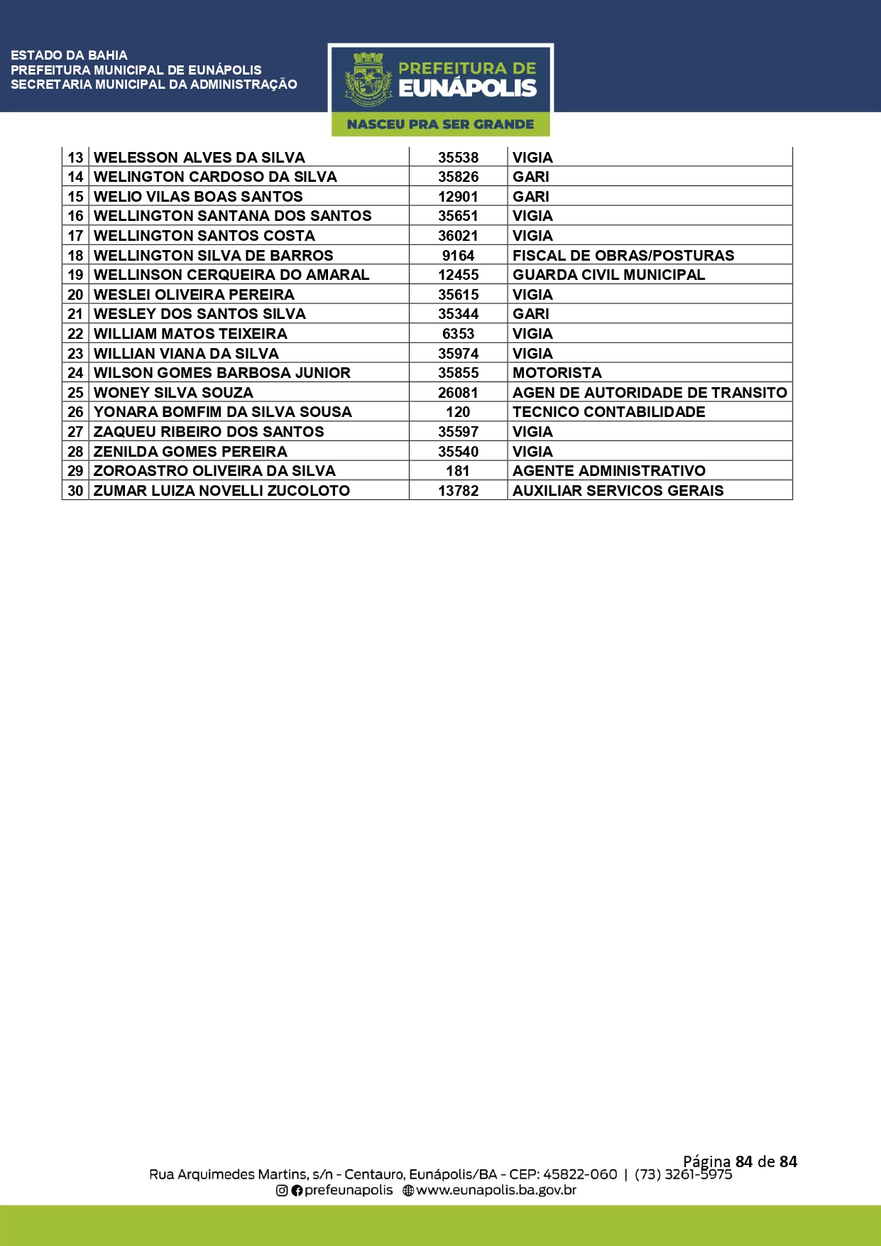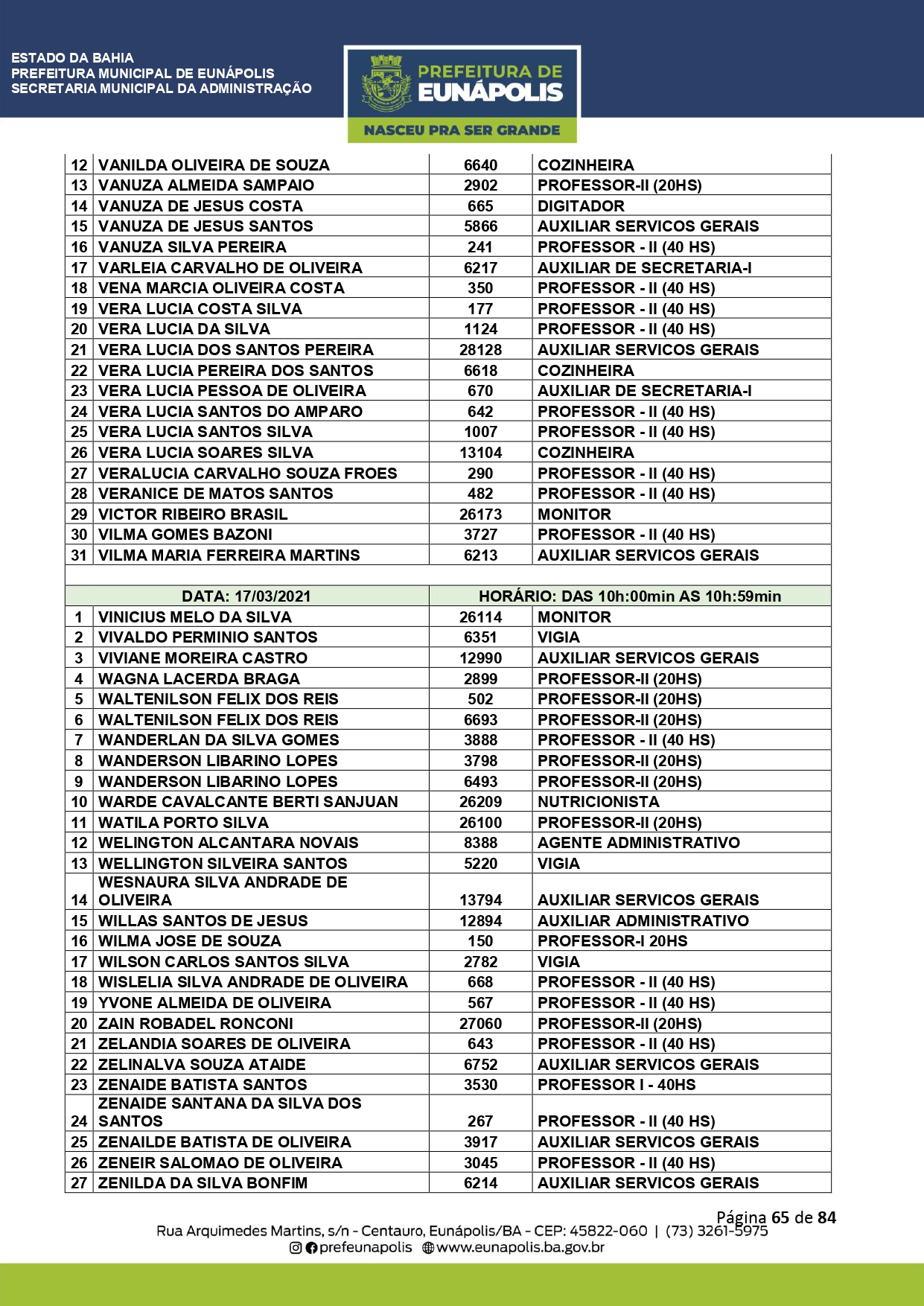 Documentação a ser levada e todos os demais detalhes que visam a atualização dos dados cadastrais dos servidores públicos municipais, você encontra acessando eunapolis.ba.gov.br/Site/ DiarioOficial.