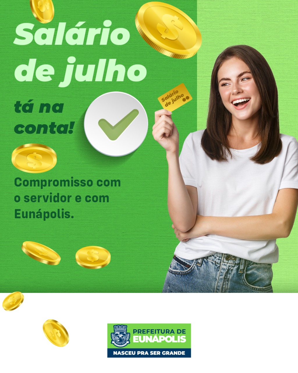 A Prefeitura de Eunápolis iniciou, na terça-feira, dia 27, o pagamento antecipado referente ao mês de julho para os servidores municipais. A Secretaria de Gestão informa que a folha salarial será completamente quitada até a quinta-feira, dia 29, injetando em torno de R$ 11 milhões na economia local.
