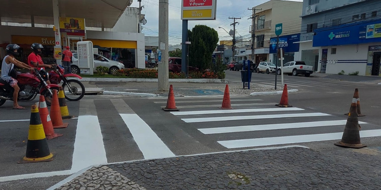 Com o objetivo de ampliar a segurança no trânsito e reforçar a organização da circulação de veículos, a Prefeitura Municipal de Eunápolis avança no serviço de melhorias da sinalização viária horizontal e vertical de importantes ruas e avenidas. O trabalho inclui pintura de faixas de solo e de pedestres, além da implantação de placas.