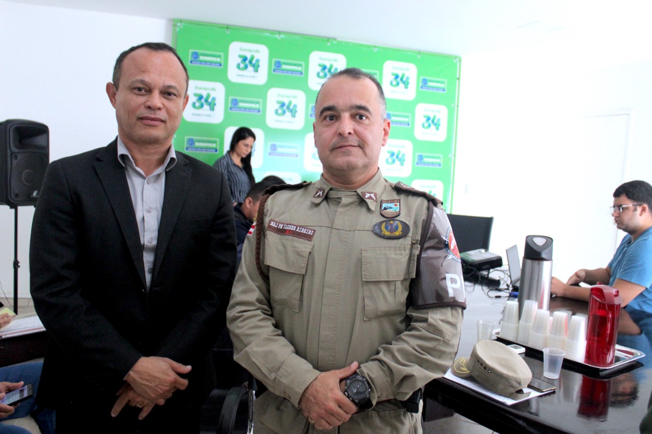 O major Vagner Ribeiro, comandante da 7ª CIPM; o coordenador da 23ª Coorpin, Moisés Damasceno; e representantes da Guarda Civil Municipal; estiveram na mesa de discussão, onde foi explanado pelo secretário, Paulo Dapé, a preocupação da prefeita Cordélia Torres quanto à segurança dos eunapolitanos, diante do fato ocorrido no último final de semana, em que pessoas morreram vítimas de ação criminosa no Residencial Parque da Renovação.