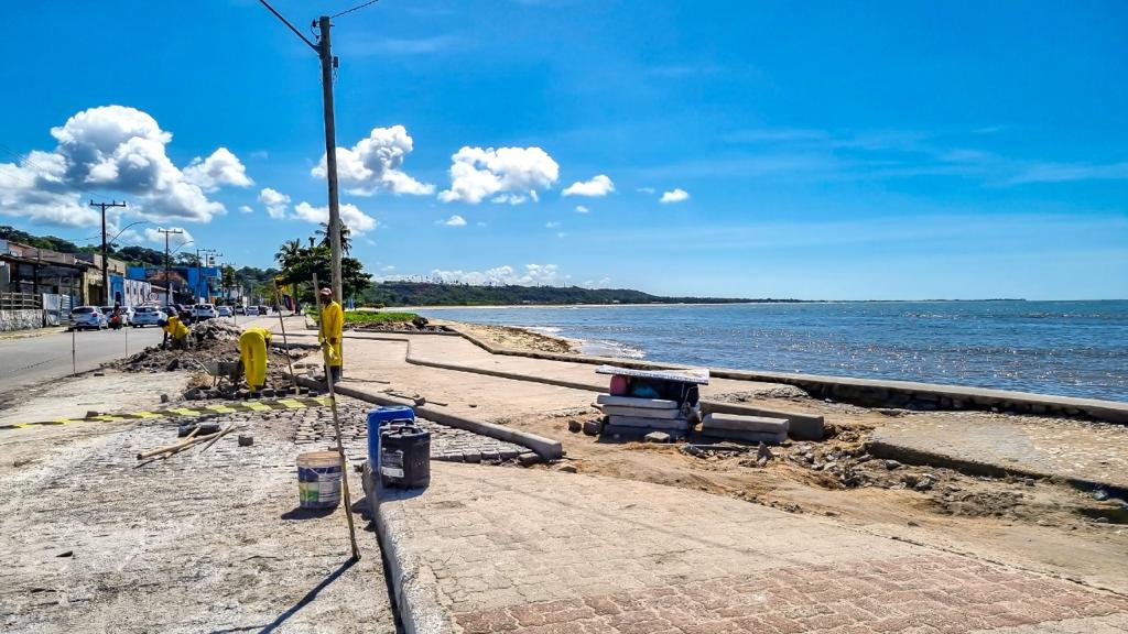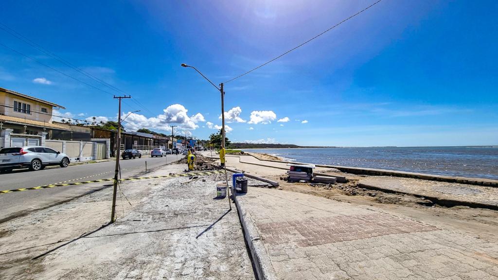 Seguem aceleradas as obras de revitalização do calçadão na Avenida do Descobrimento, logo após o ponto de ônibus do Banco do Brasil, onde está sendo recuperado todo o trecho até chegar na Praça das Pitangueiras.