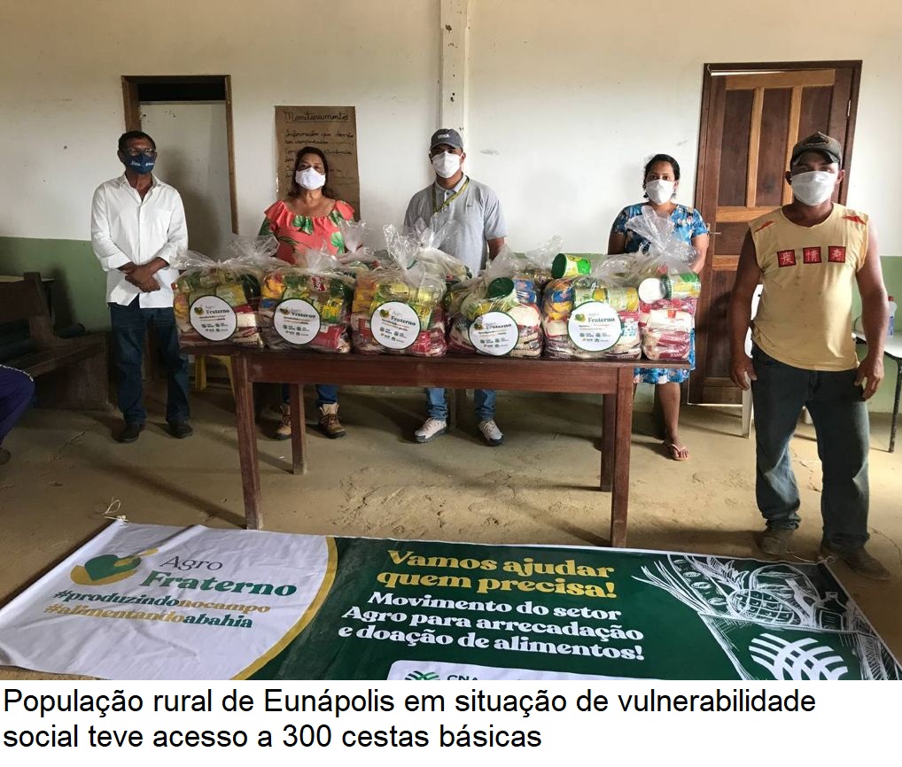 Na quarta-feira, dia 15, foi concluída a entrega de 300 cestas básicas para a população de diversas localidades rurais. A ação ocorreu em parceria com sindicatos, Federação da Agricultura e Pecuária do Estado da Bahia (FAEB) e Serviço Nacional de Aprendizagem Rural (SENAR).