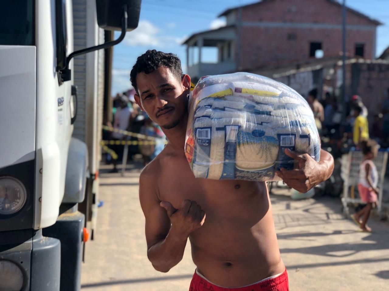 Destaque nas ações assistenciais no primeiro mês do ano, a entrega de cestas básicas, água mineral e kits de limpeza e higiene beneficiou milhares de moradores dos bairros Alecrim I e II, Vista Alegre, Nacional, localidade da Tangerina e ruas do Pequi e Itapoã, que vivem nas áreas mais afetadas pelas chuvas.