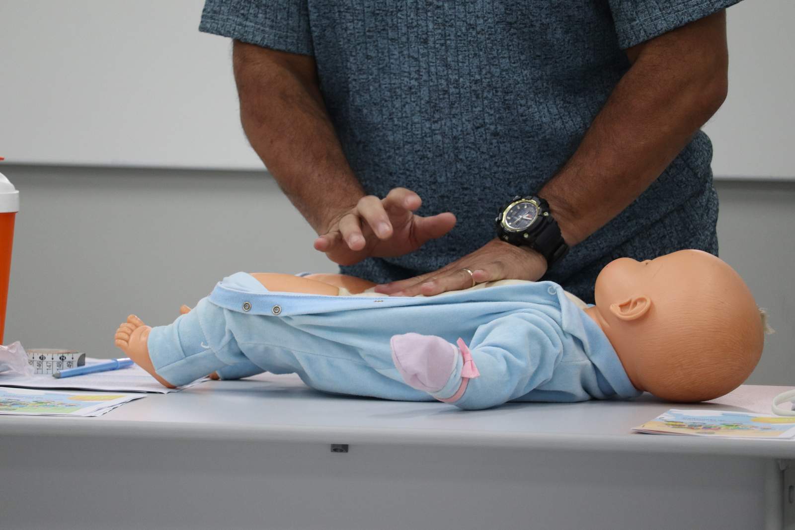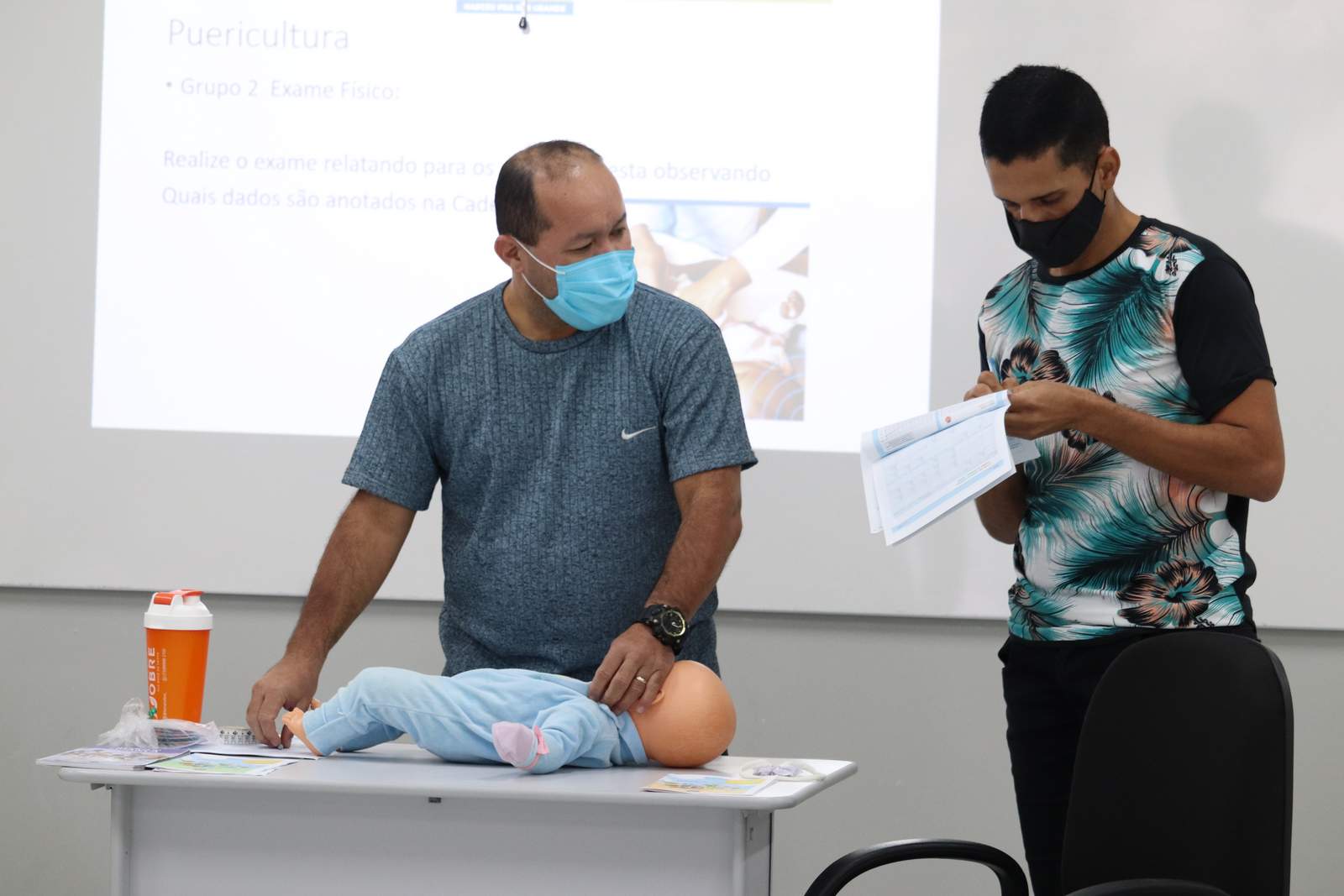 Durante o treinamento, a médica Maria Eugênia Franca palestrou para os enfermeiros a importância da puericultura e a maneira correta de ser realizada, envolvendo anamnese, exame físico, orientações e prescrições, calendário vacinal, utilização da caderneta de saúde da criança, aleitamento materno, pesagem correta, triagem neonatal e desenvolvimento do bebê.