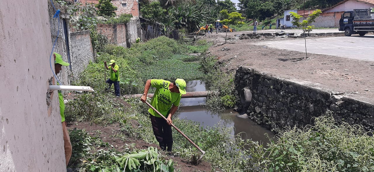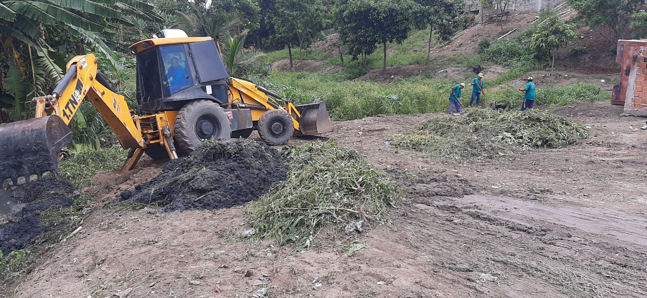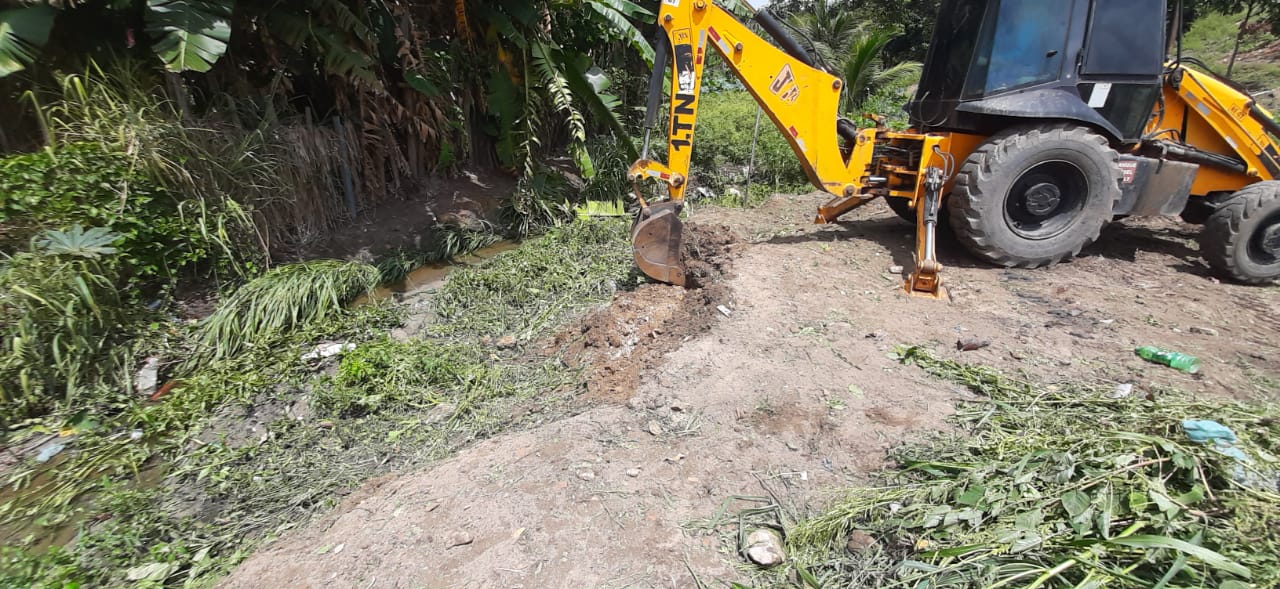 Com auxílio de equipe operacional e máquinas, o trabalho visa melhorar a drenagem da água das chuvas, que atingem a região atualmente, evitando assim, as enchentes.