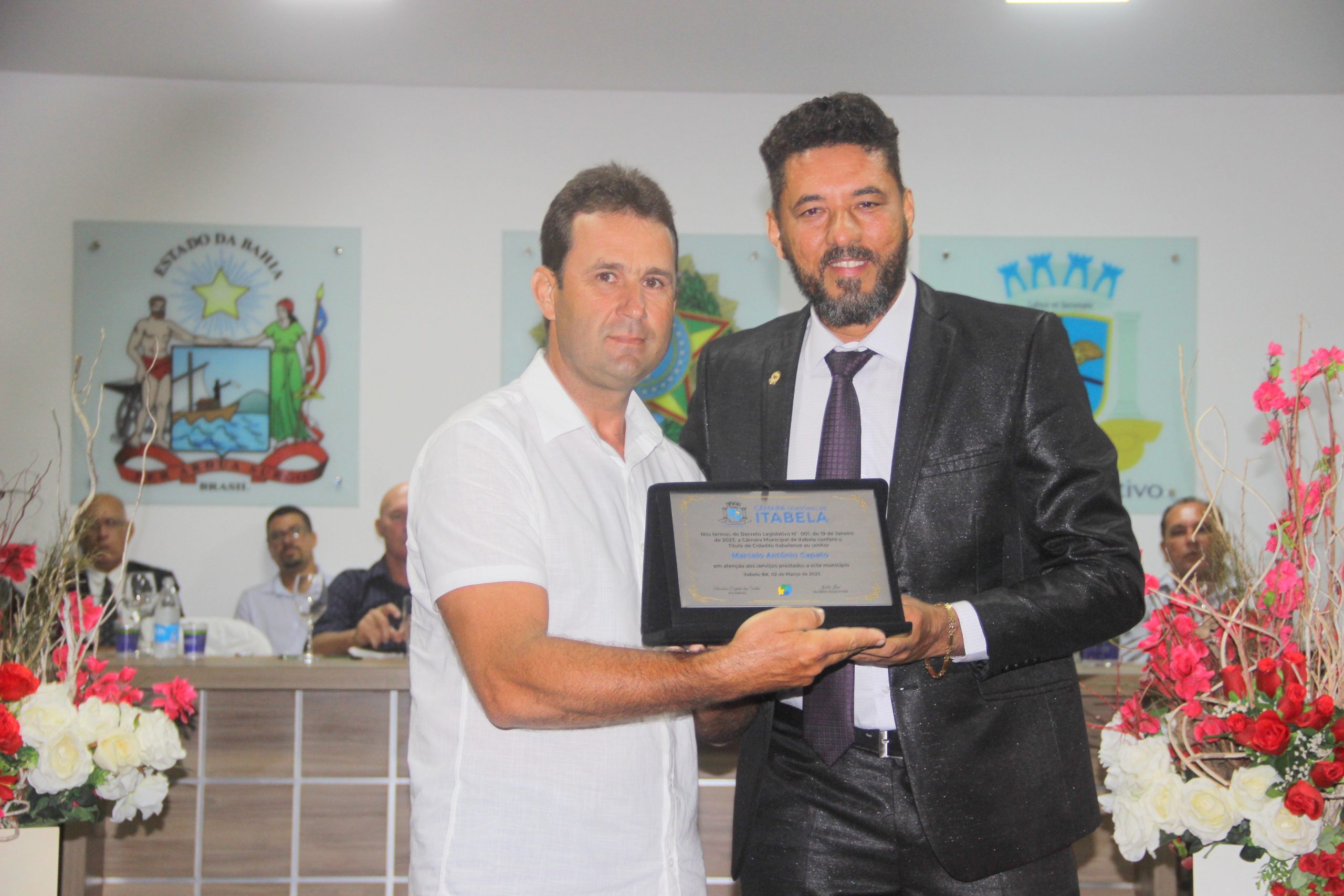 Representando o Poder Legislativo o Presidente da Câmara, Ademilson Eugênio (Lukinho Eugênio), discursou ressaltando que “a Casa é do povo”, agradeceu a cada um dos colegas vereadores, e deu as boas-vindas ao novo vereador de Itabela, o senhor Eronildo Divino. Fez elogios ao prefeito municipal resumindo o trabalho em “transformação” da cidade. Falou sobre a importância das homenagens e de serem realizadas às pessoas em vida.