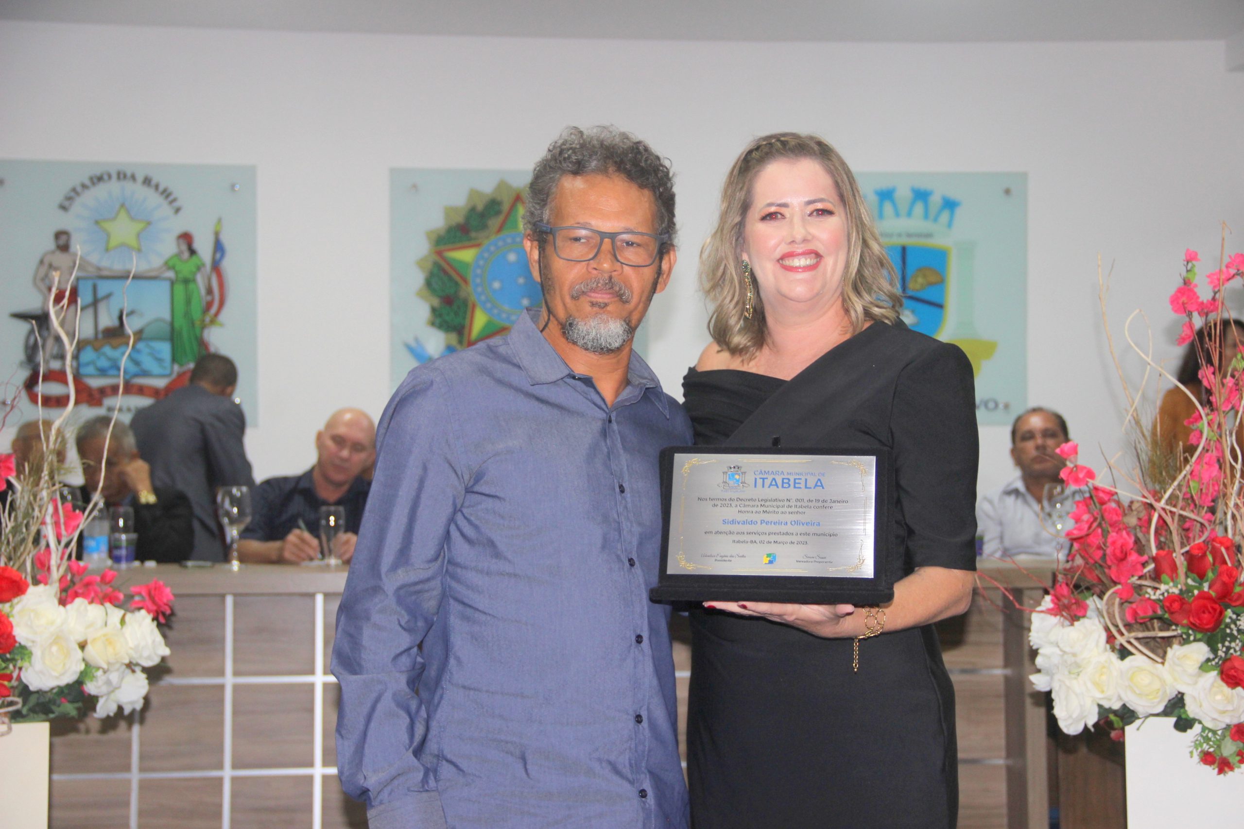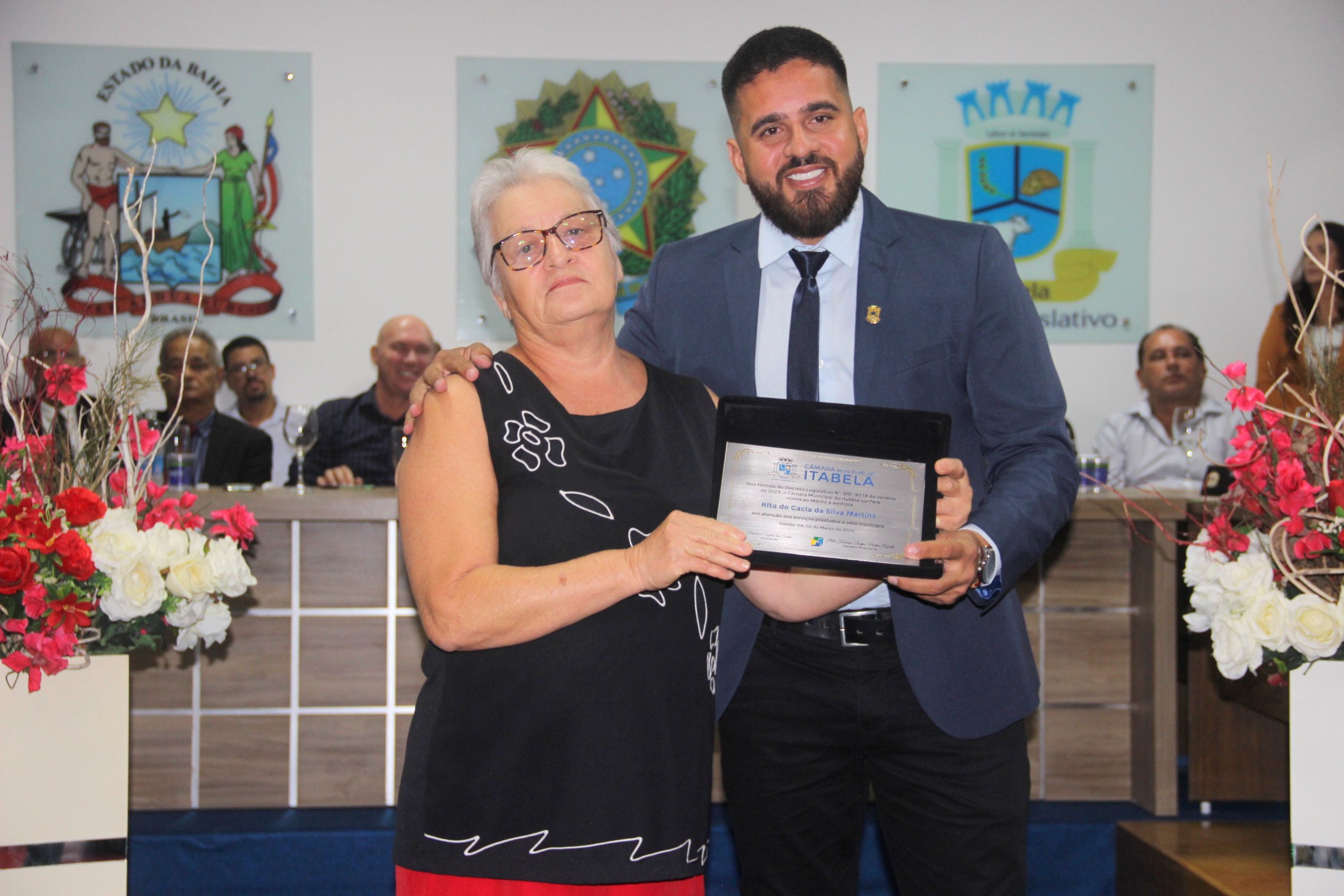 Na sequência cada vereador, e o prefeito, se posicionaram ao centro para fazer a entrega das placas aos homenageados, que tiveram um resumo dos seus perfis e histórias contadas.