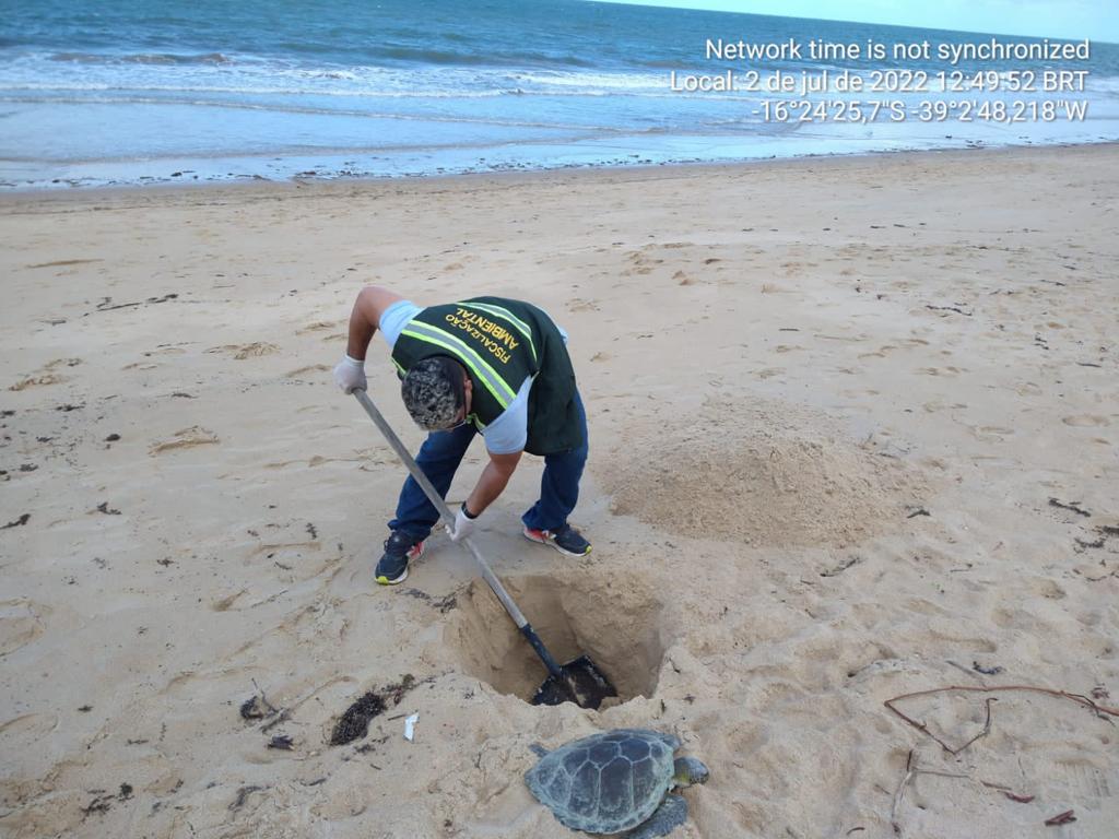 Segundo informações do denunciante que tentou salvar a vida da tartaruga, retirando-a do local, o animal apresentava desorientação e dificuldade para nadar, vindo para beira mar sem conseguir retornar, momento em que acionaram a fiscalização ambiental.