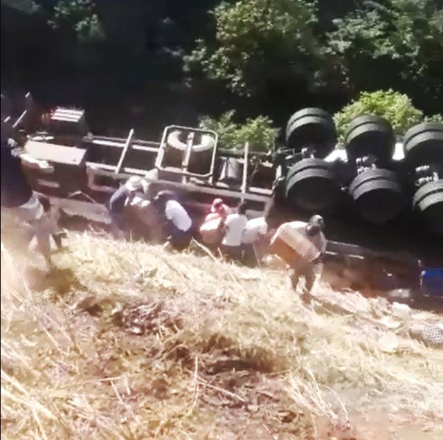 Como sempre ocorre, o local ficou cheio de gente para saquear a mercadoria. Por volta das 21:00h ainda haviam pessoas no local, na tentativa de levar algo, quando a carreta deslizou no terreno, soterrando muitos que ali se encontravam.