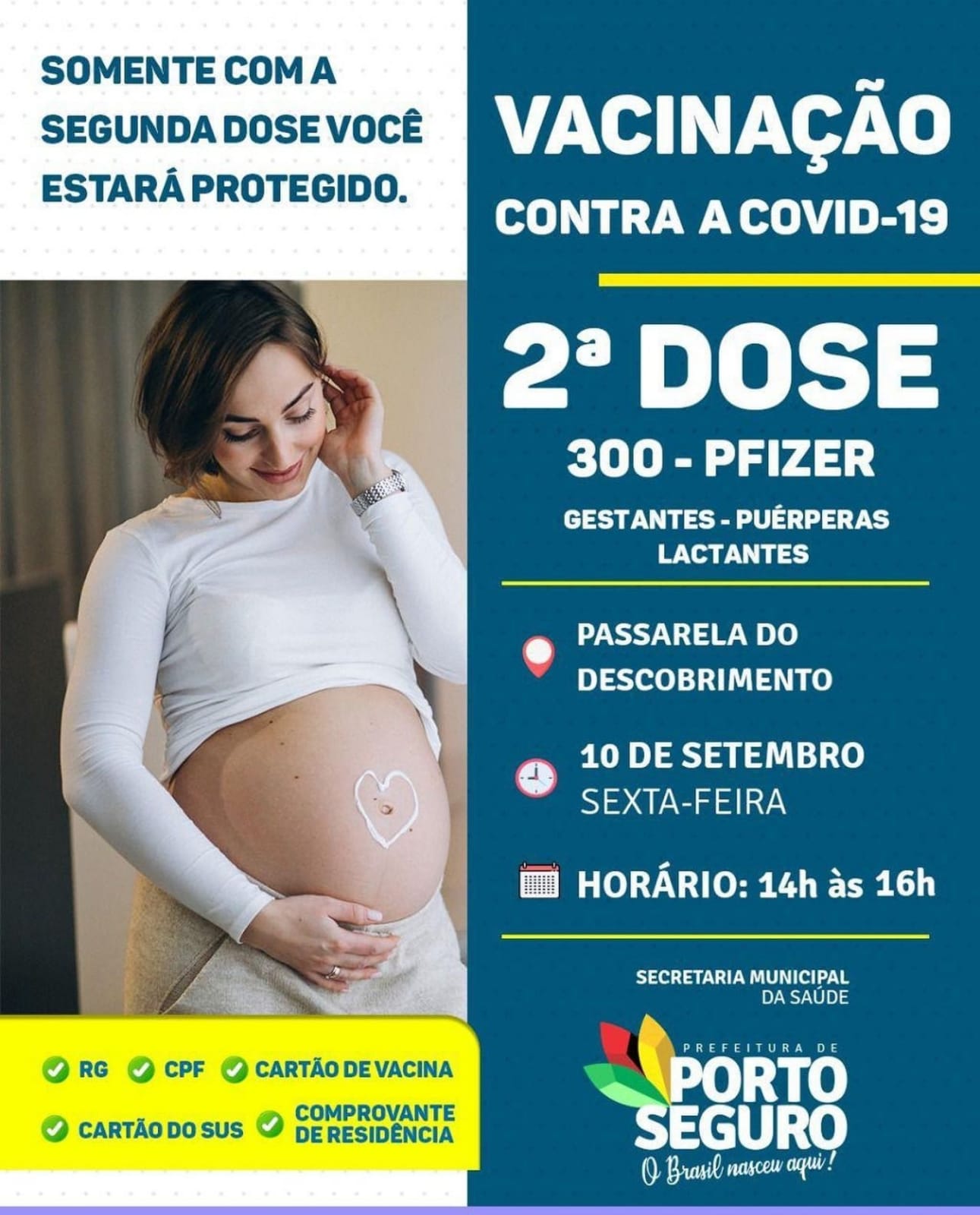 ✅ 2ª dose – Pfizer -Distribuição de até 300 senhas para gestantes, puérperas e lactantes.