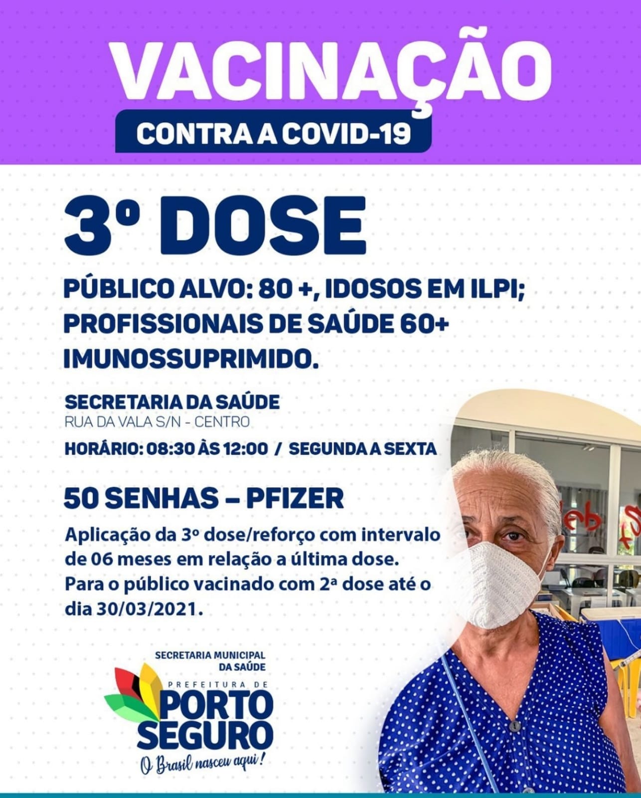 🚨 Aplicação da 3ª dose/reforço com intervalo de seis meses após a última dose, destinadas para os vacinados com a 2ª dose até o dia 30/03/2021.
